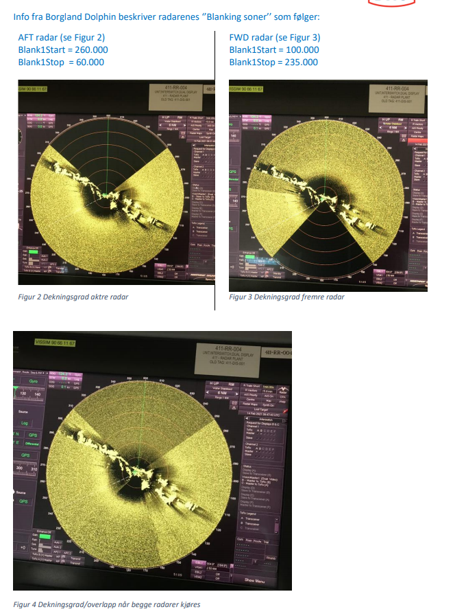 Nedenfor finner dere også bilder av radarene på Borgland Dolphin hvor kun aktre radar kjøres (Figur