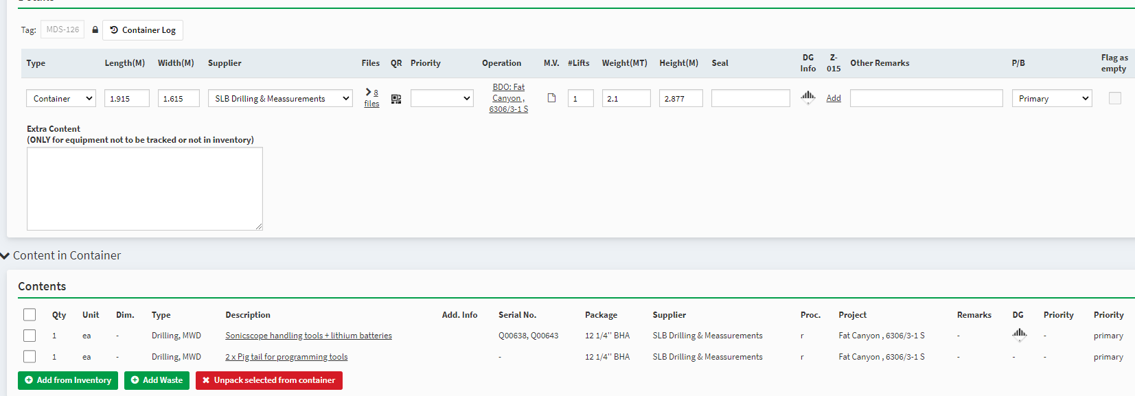 SLB D&M sends out several 8ft containers only filled with for examples batteries. One therefore has many containers that are more or less empty, just taking up space in addition to reducing efficiency.